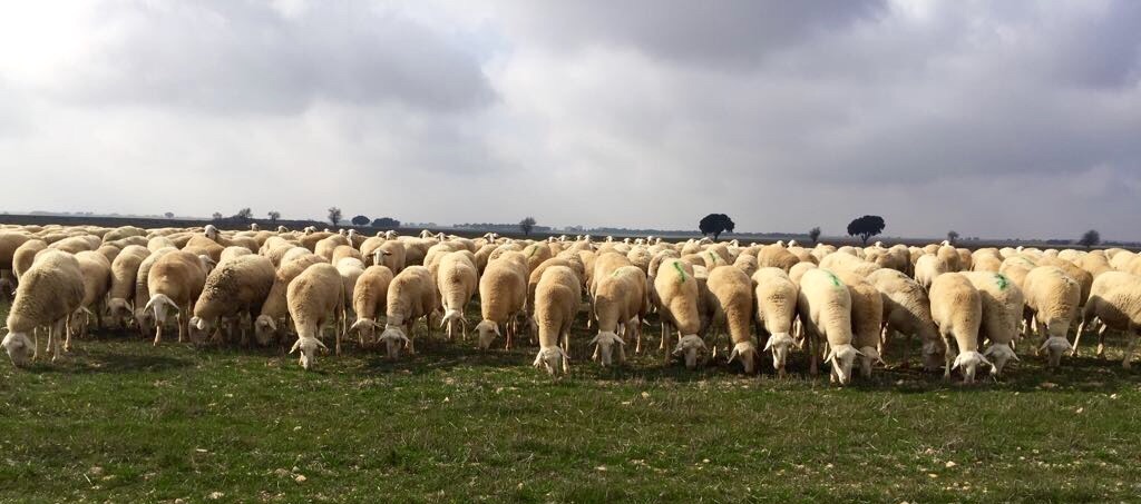 Rebaño de ovejas de raza manchega